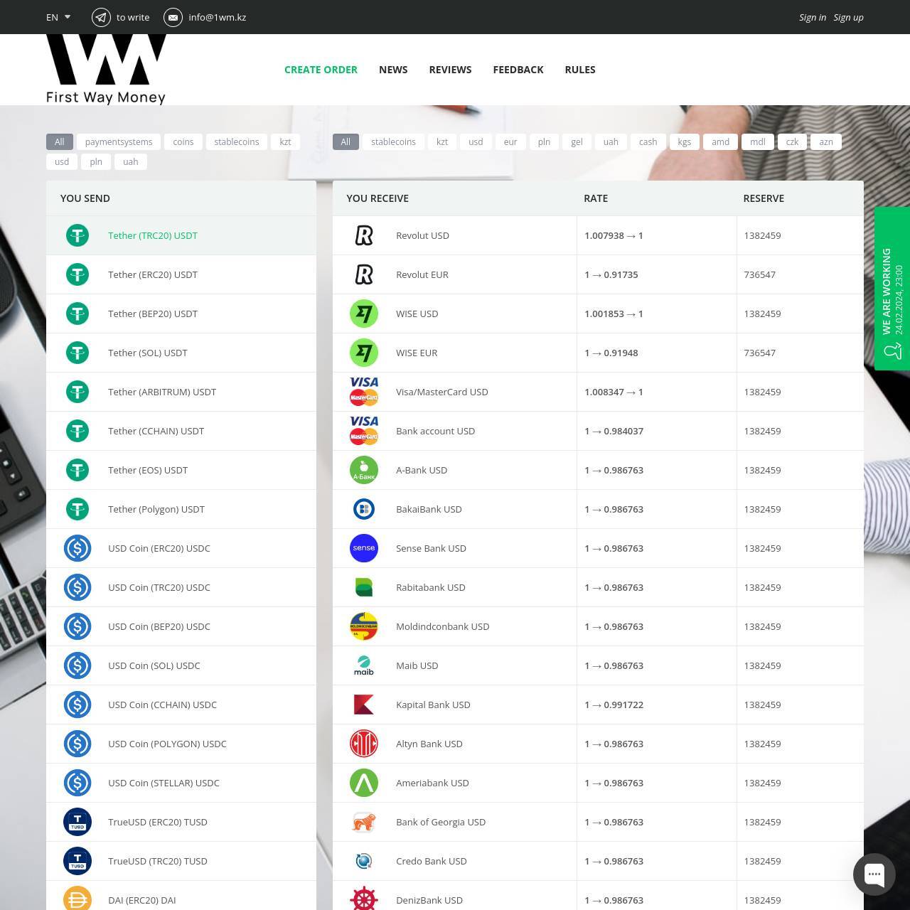 1WM - First Way Money, это профессиональный и удобный обменник электронных валют. Большой выбор направлений обмена и высокая скорость по лучшему курсу.