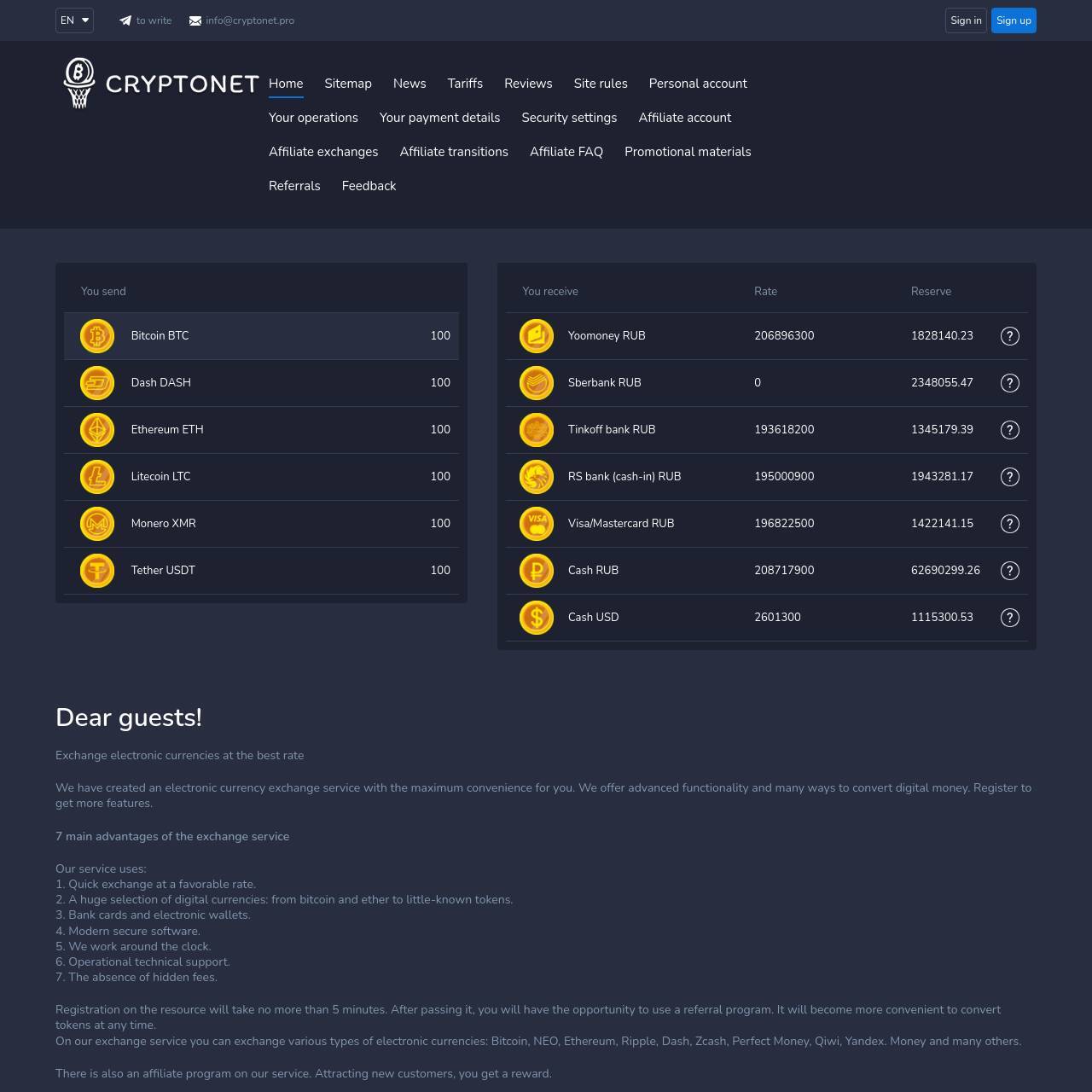 Добро пожаловать на сайт обменного пункта Cryptonet!
