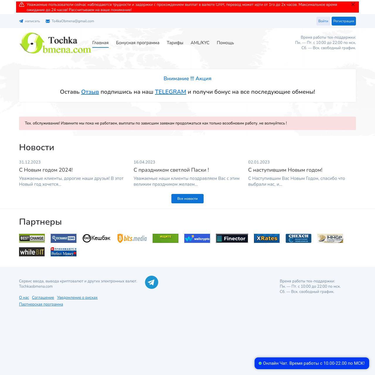 Информация от администратора обменника