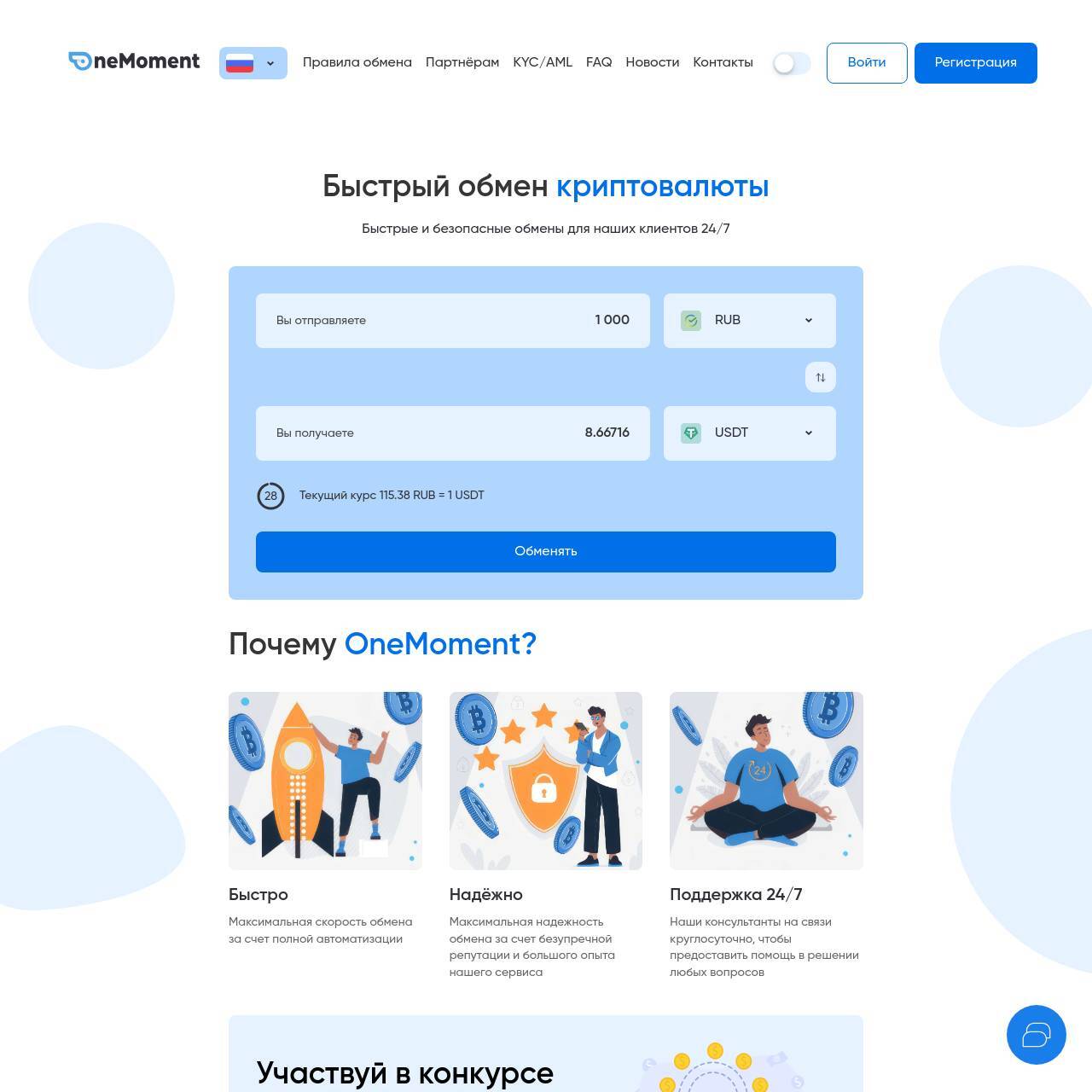 Рады представить Вашему вниманию обменный сервис onemoment.cc .