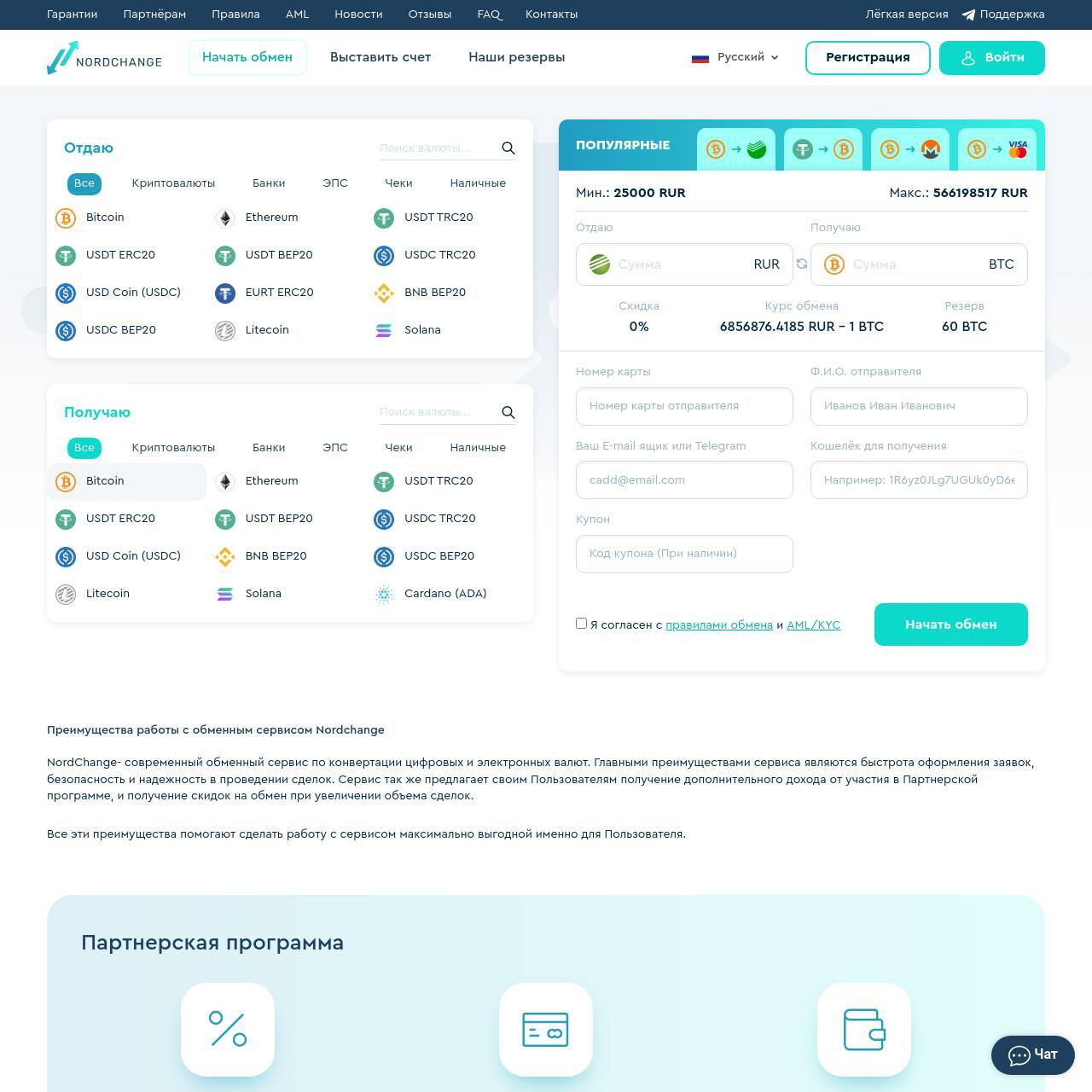 NordChange - это надежный сервис по обмену криптовалют. У нас Вы можете найти множество направлений обмена по выгодному курсу.