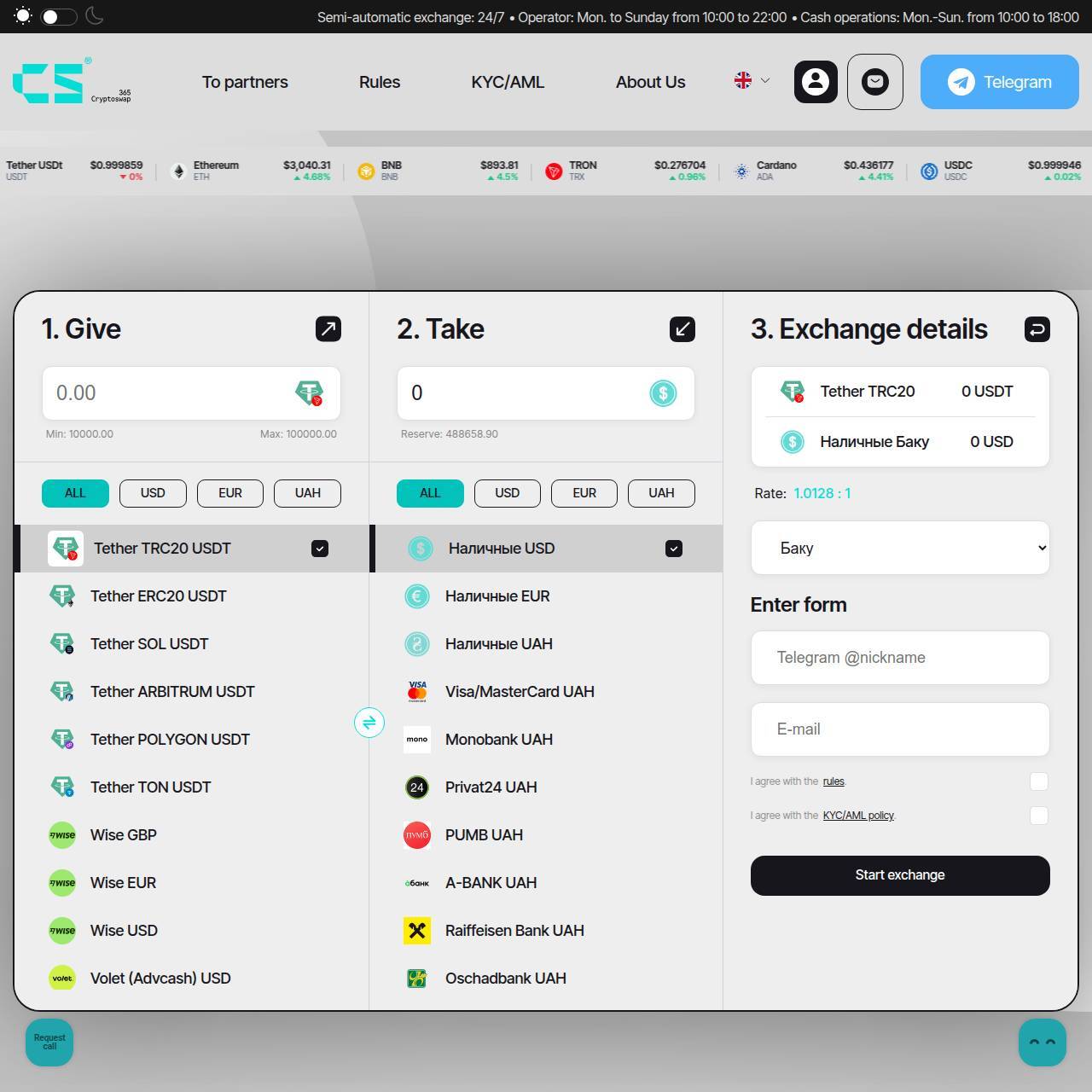 Cryptoswap365 — надежный онлайн-сервис обмена электронных валют и USDT