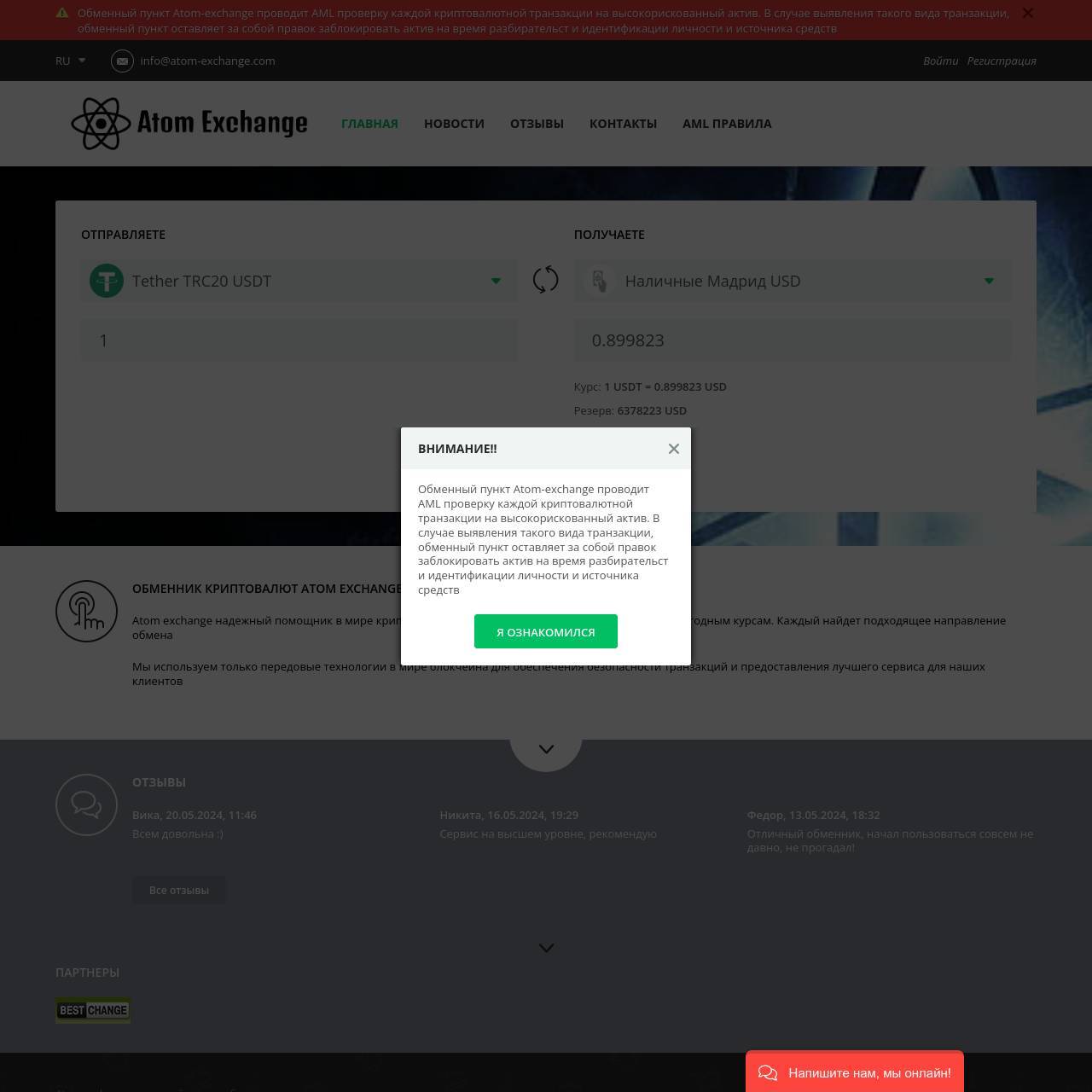ОБМЕННИК КРИПТОВАЛЮТ ATOM EXCHANGE