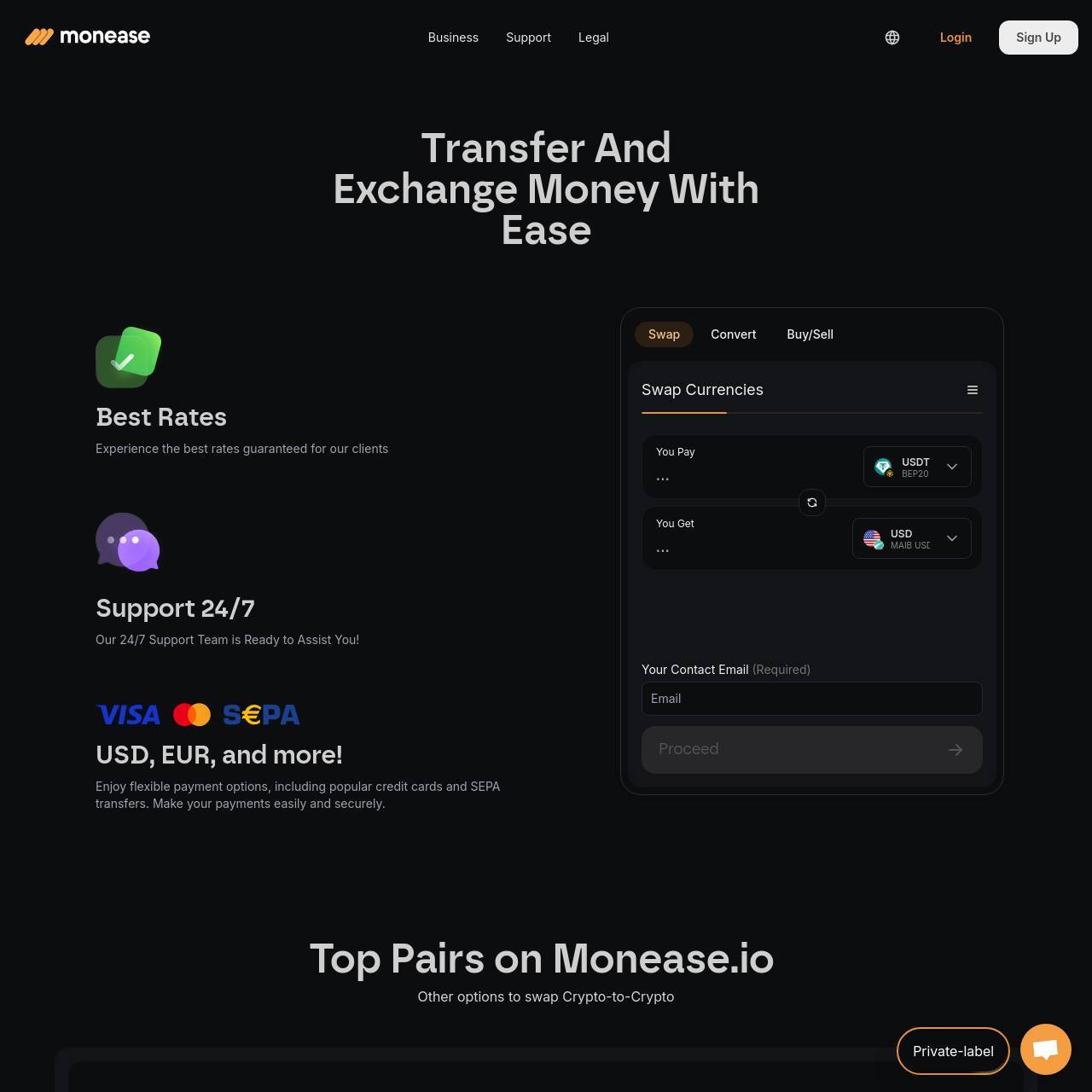 Monease — это платформа, которая позволяет пользователям легко покупать, продавать и обменивать криптовалюты, онлайн-банкинг и электронные кошельки. Наша платформа предлагает быстрые и безопасные варианты оплаты для переводов. Мы стремимся предоставлять лучшие курсы обмена на рынке. Помимо содействия обмену валют, Monease также предлагает ряд платежных услуг, включая транзакции P2P и денежные переводы. Мы также предоставляем API с несколькими способами оплаты для продавцов в разных странах.