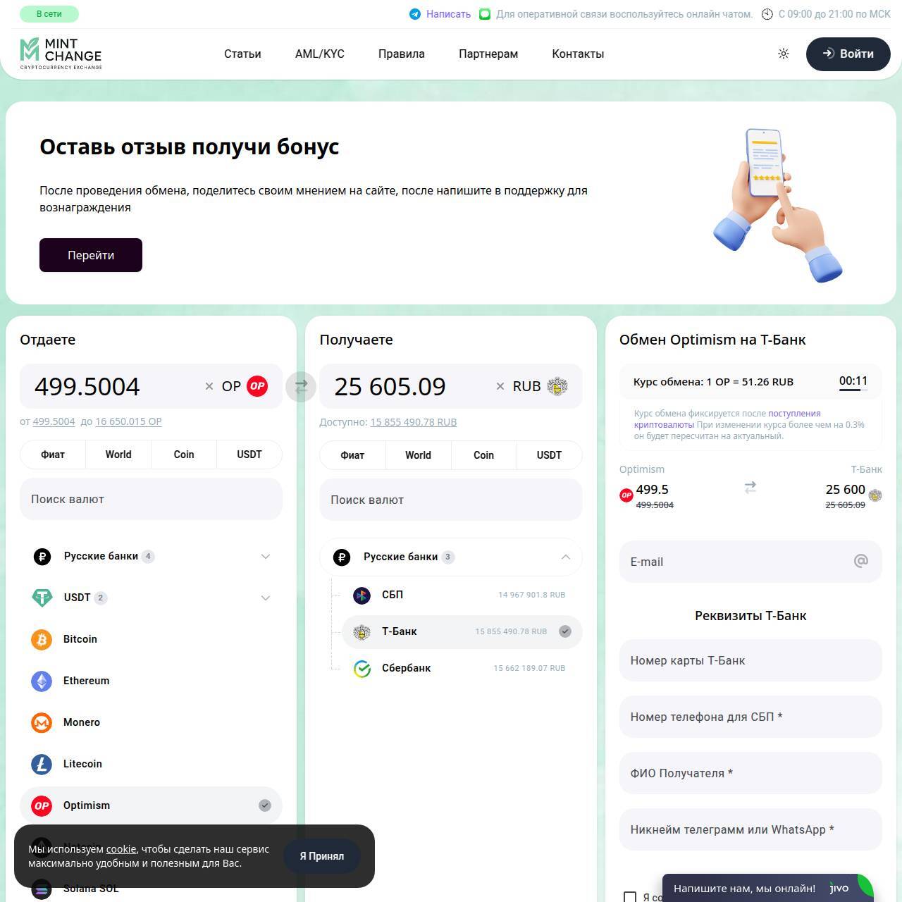 Mint-Change — это надёжный и быстрый способ обмена криптовалюты в России и Таиланде. Мы предлагаем выгодные курсы, прозрачные условия и моментальные выплаты.