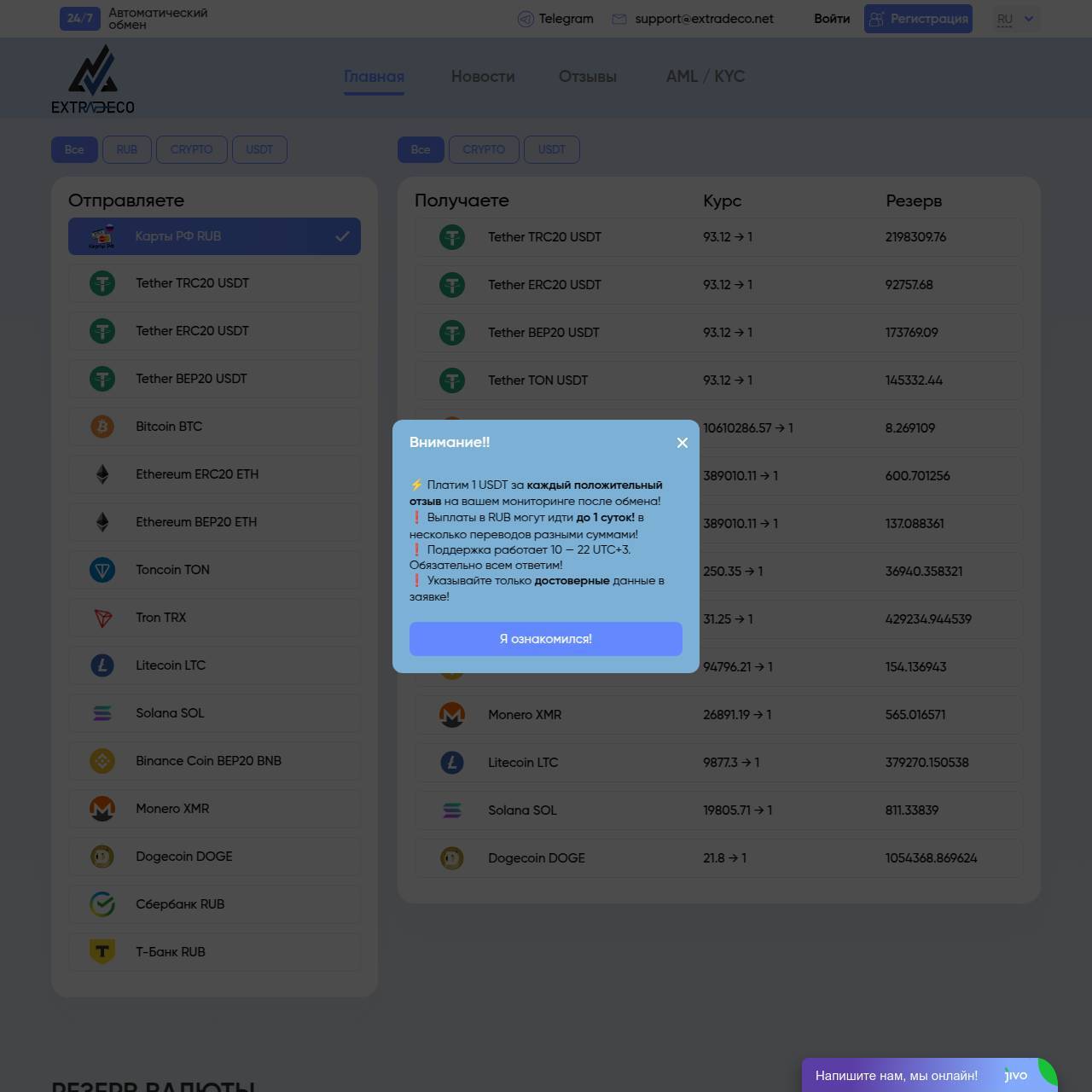 Отзывы обменника Extradeco