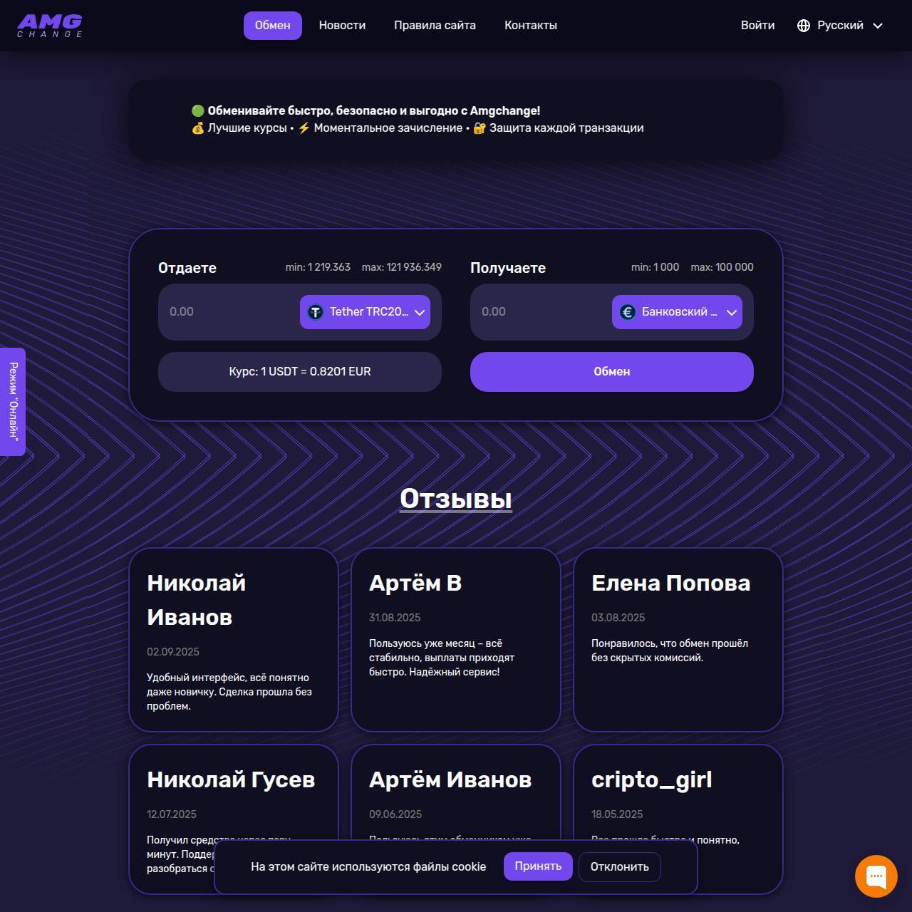 AMGChange – это удобный сервис для обмена криптовалюты.