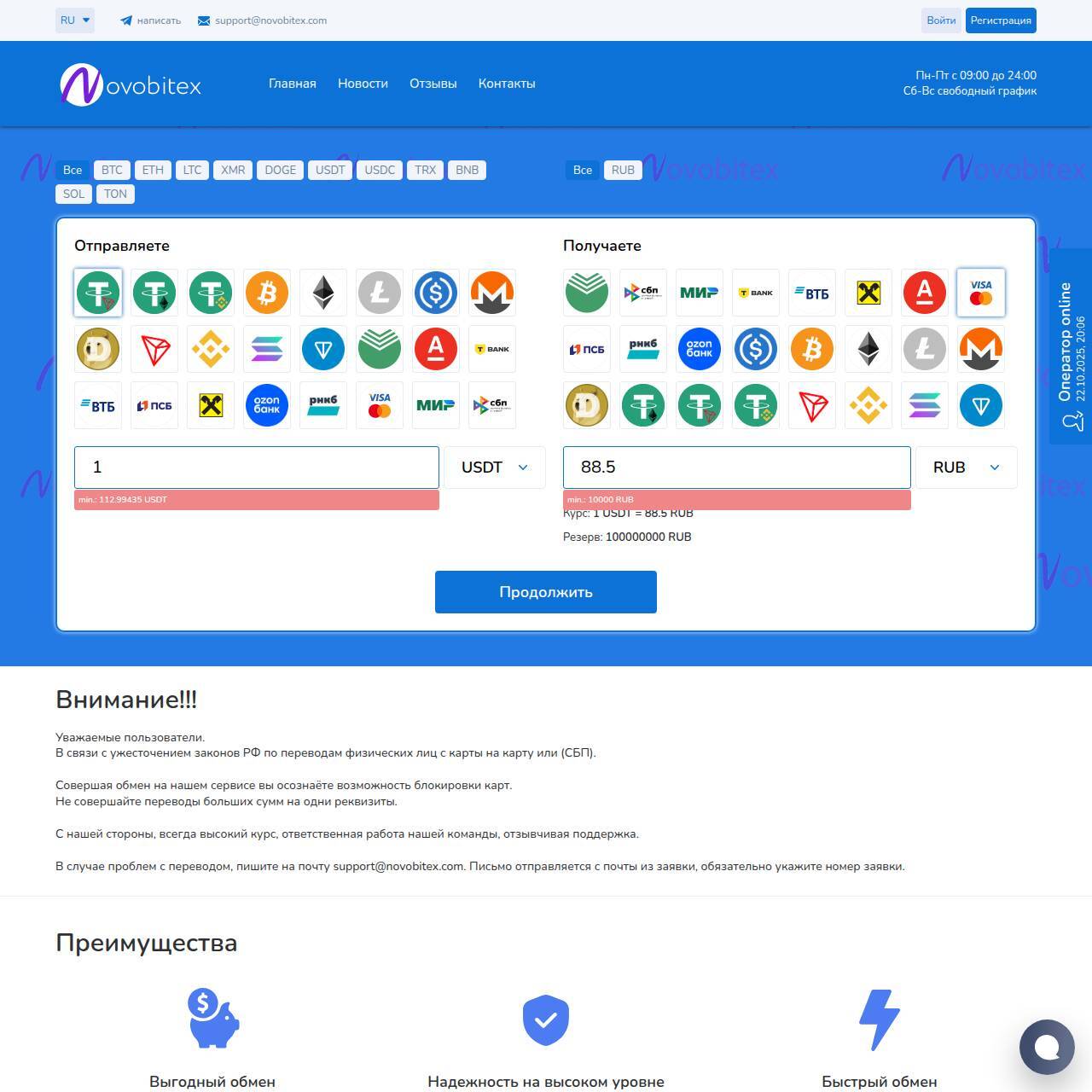 Совершая обмен на нашем сервисе вы осознаёте возможность блокировки карт.