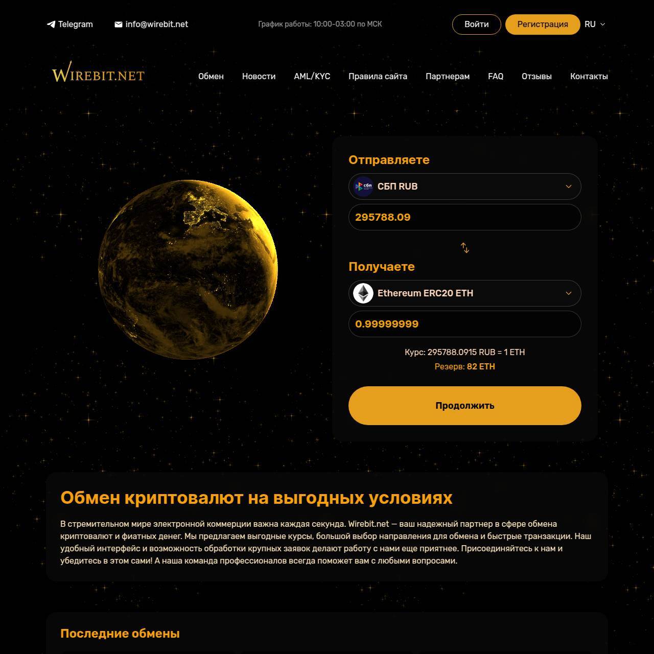 В стремительном мире электронной коммерции важна каждая секунда. Wirebit.net — ваш надежный партнер в сфере обмена криптовалют и фиатных денег. Мы предлагаем выгодные курсы, большой выбор направления для обмена и быстрые транзакции. Наш удобный интерфейс и возможность обработки крупных заявок делают работу с нами еще приятнее. Присоединяйтесь к нам и убедитесь в этом сами! А наша команда профессионалов всегда поможет вам с любыми вопросами.
