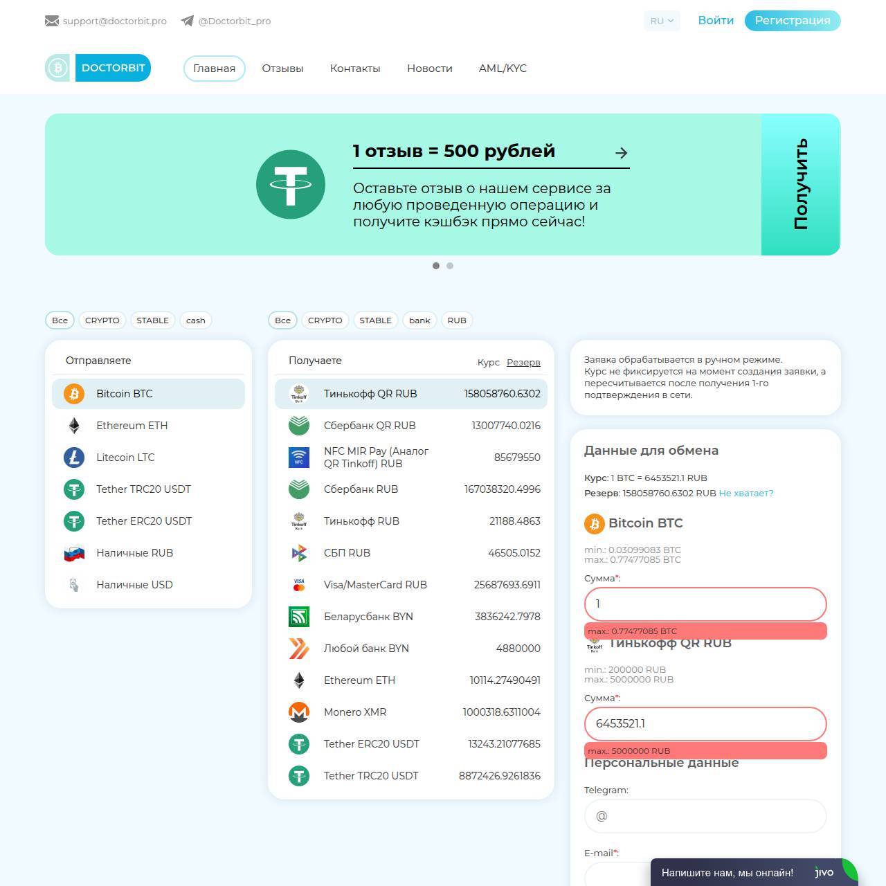 DOCTORBIT.PRO – это сервис для обмена электронных валют.