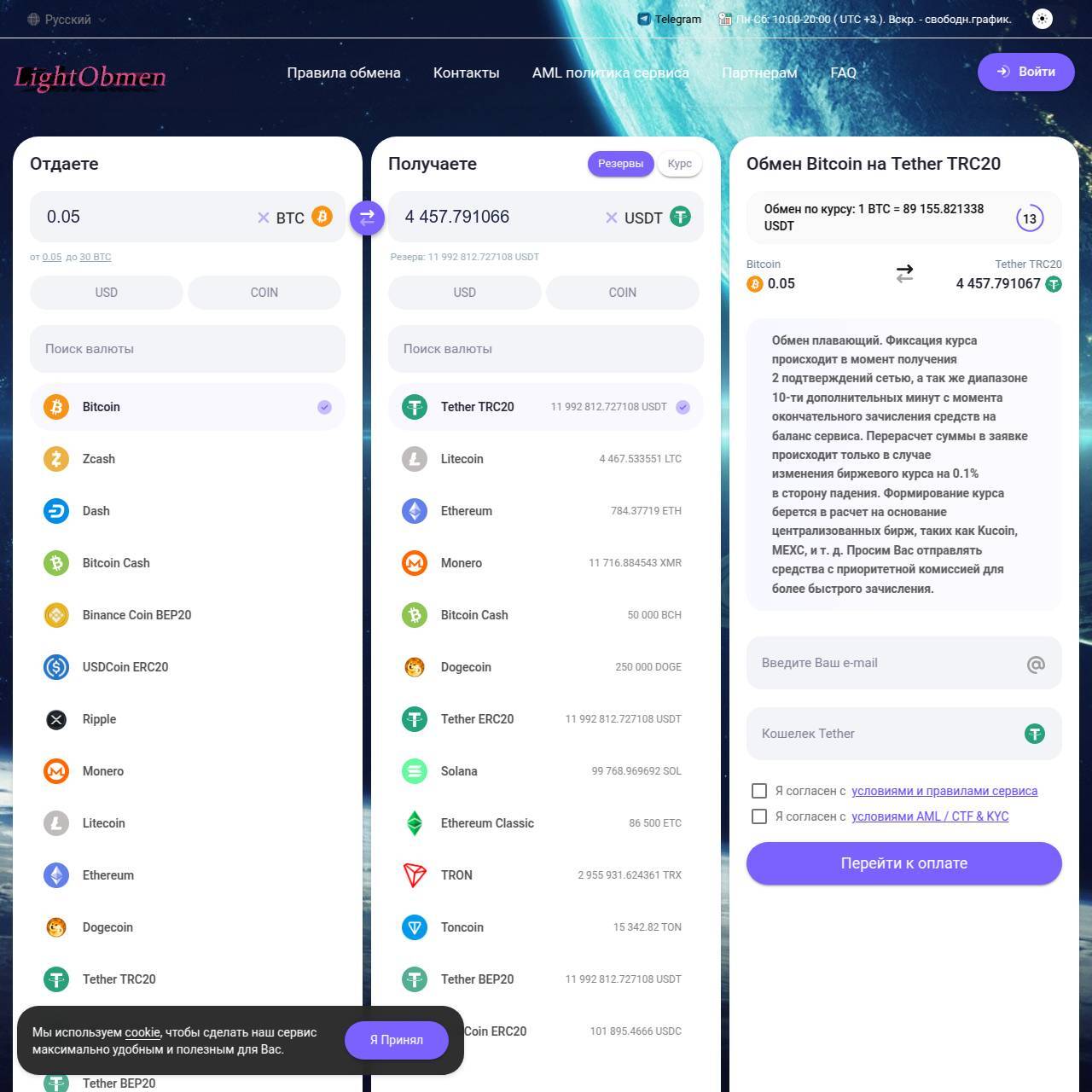 LightObmen является специализированным обменником электронных валют, акцентируя свое внимание на обеспечении надежных и быстрых операций обмена.