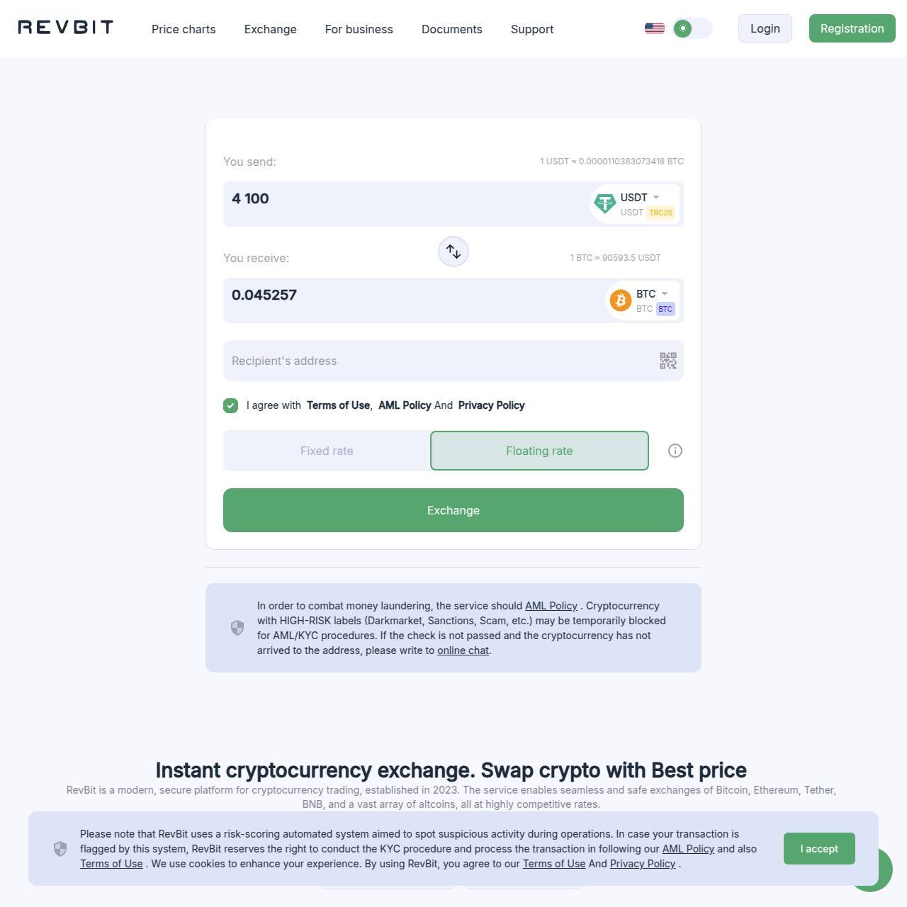 RevBit – это ваш выбор для безопасной и простой торговли криптовалютой по выгодным комиссиям. Легко обменивайте одну криптовалюту на другую. Присоединяйтесь к нам и наслаждайтесь быстрыми транзакциями уже сейчас.