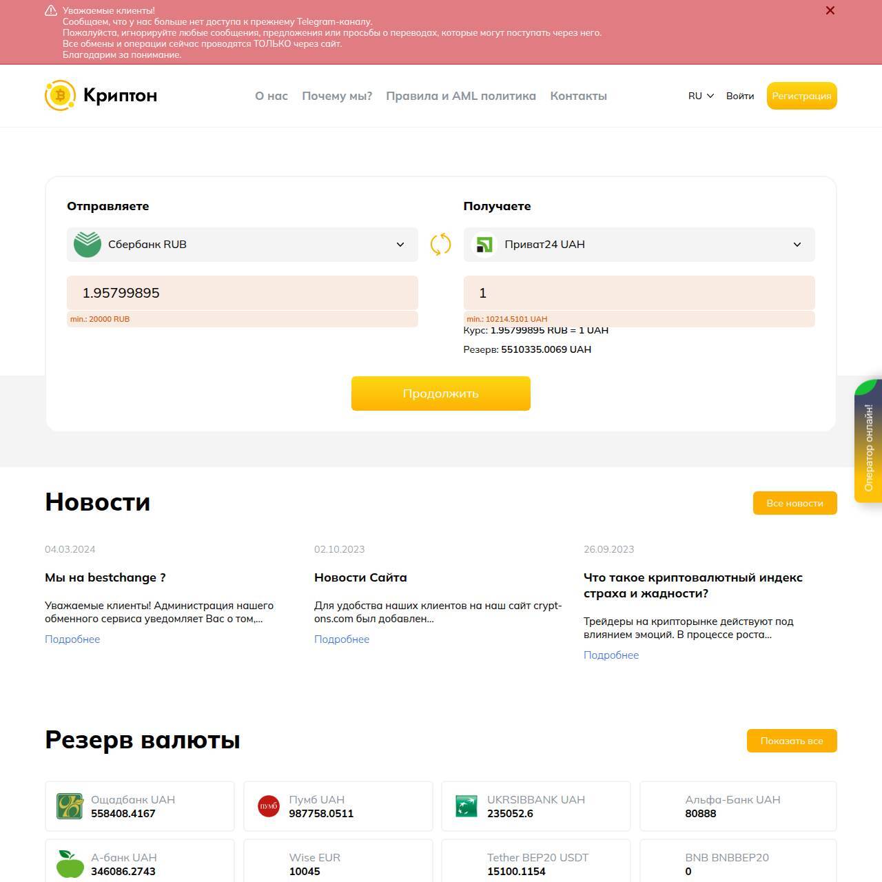 Отзывы обменника Криптон